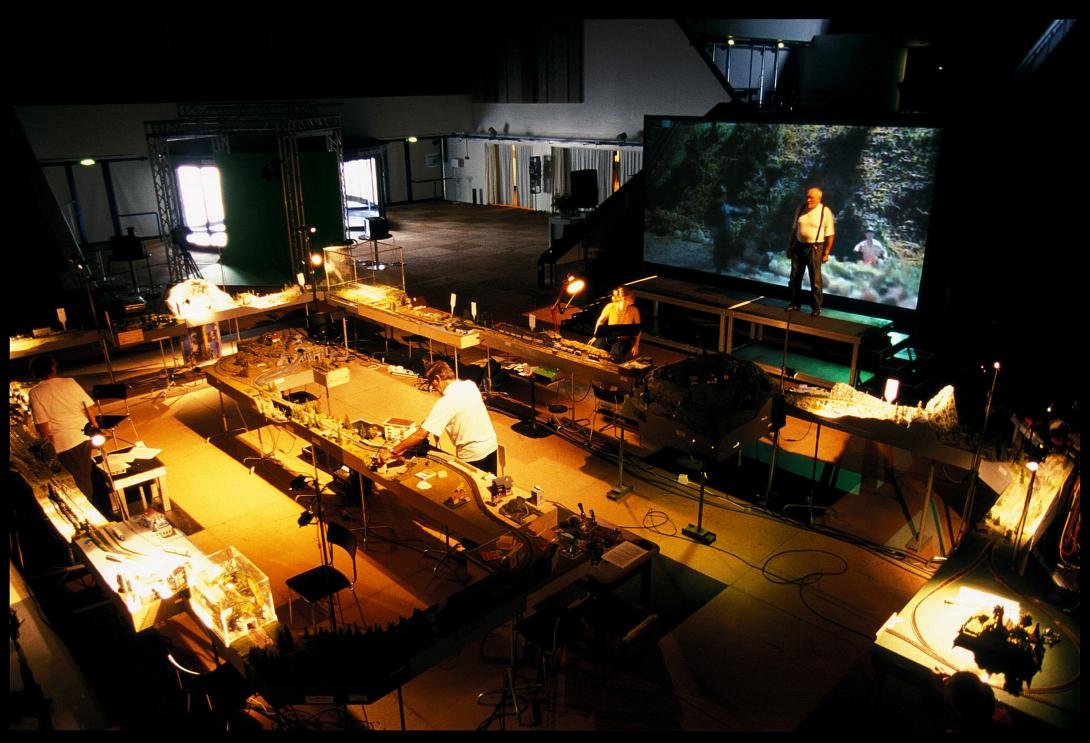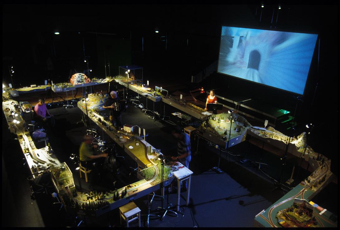 zwischen Aussichtsterrasse und Schattenbahnhof wuchert in diesen Alpen eine filmische Vogelperspektive als theatrale Landschaftsmalerei: «Im Modell ist jeder Boden doppelt.» [Stefan Kaegi]