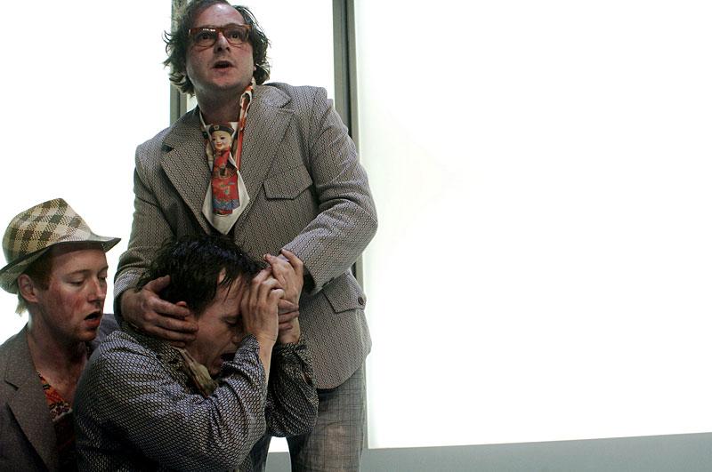Aber die Brüder können ihn mit immer neuen Argumenten gefügig machen. In ihrer Wohnung soll er ihre Schwester von einer seltsamen Krankheit heilen. Er hat plötzlich Schwierigkeiten, seinen Beruf auszuüben. Seine Hände zittern, es fliesst Blut. Er kann nicht mehr fort, denn sein Pass ist verschwunden. In dem Haus gibt es nach einem Brand kein Licht. Gunter verliert die Orientierung.