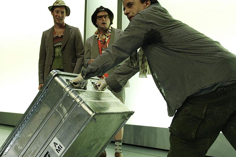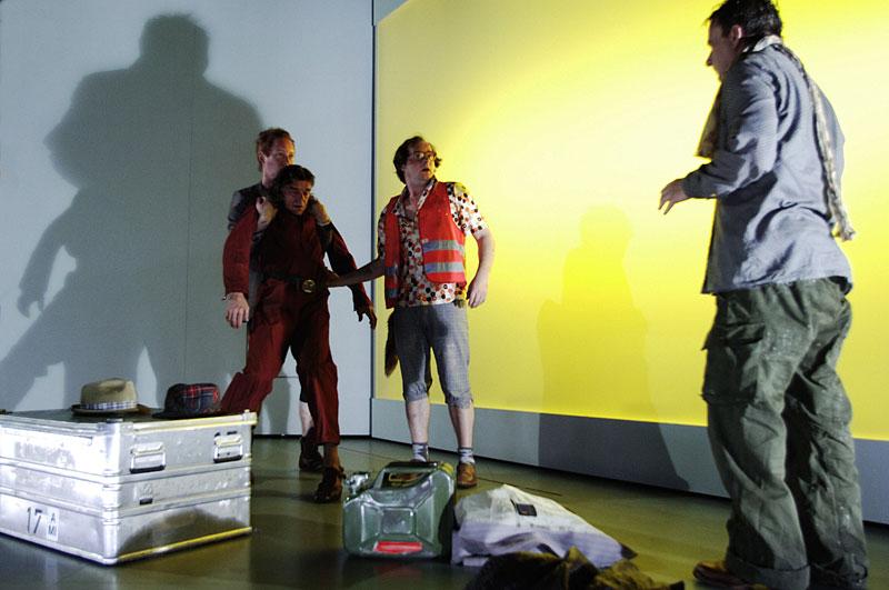 In kargen Sätzen lässt Händl Klaus Figuren und eine Welt entstehen, die zwischen Höflichkeit und gepflegter Monstrosität changiert. Drei Brüder sprechen Gunter am Bahnsteig an und führen den vor Durst fast Willenlosen durch die leeren Strassen bis in ihre Wohnung. Unterwegs wird er Zeuge, wie die drei einen alten Mann zusammenschlagen. Er beteuert immer wieder, dass er den nächsten Zug nehmen muss und ruft nach der Polizei. Seine Eltern rechnen noch heute mit seiner Ankunft.