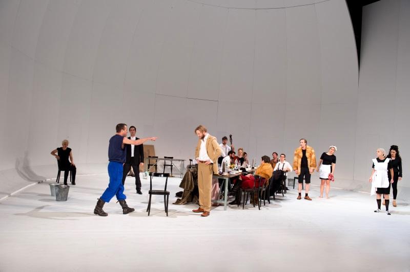 Der Chemiker Protassow predigt vor dem Hintergrund einer grassierenden Cholera-Epidemie die Idee des künftigen Menschen, der nach Überwindung «der düsteren Todesangst» teil eines «grossartigen Organismus», der Menschheit in Freiheit, sein werde. Die Tragikomik des Stücks resultiert vor allem aus der Unkenntnis der russischen Intelligenzija in Bezug auf die eigenen Bediensteten, deren bildungsferne, bäuerlichpatriarchale Kultur zwar deutlich ins Wanken geraten ist, die nun jedoch bemüht sind, in die komfortablen Etagen des Kleinbürgertums aufzusteigen. Aussichtslos erscheint so das idealistische Projekt der Kinder der Sonne, Licht in die Finsternis der Unaufgeklärten zu bringen, dem Volk aus seiner unverschuldeten, vor allem durch die sozialen Umstände bedingten Unmündigkeit zu verhelfen. Diese Fehleinschätzung des Klassengefälles sowie das grundsozialistische Bedürfnis, über alle individuellen Lebenskonzepte hinaus die Gesellschaft in ihrer Gesamtheit zu denken, entbehren im Europa des 21. Jahrhunderts keineswegs an Aktualität: Eine Utopie im Gewand der Dystopie, inszeniert von der Hausregisseurin Nora Schlocker.