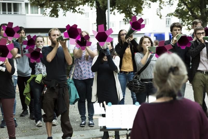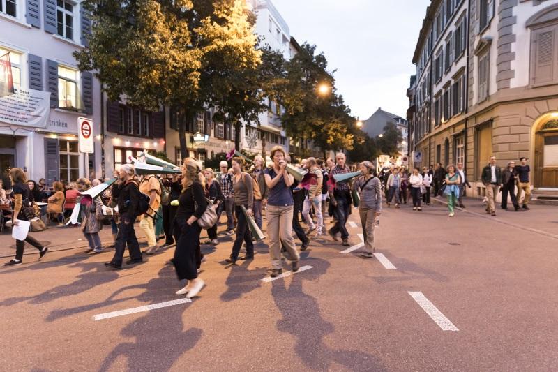 Eine musikalische Performance im Stadtraum von Basel.