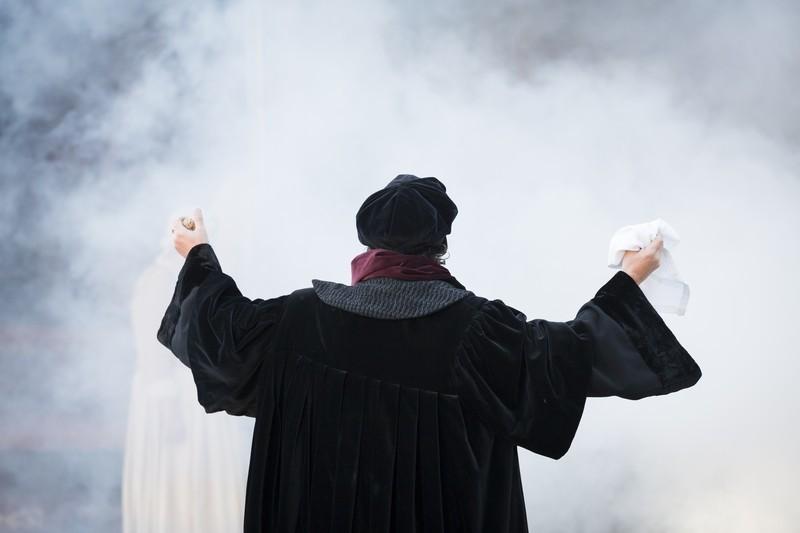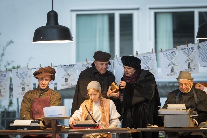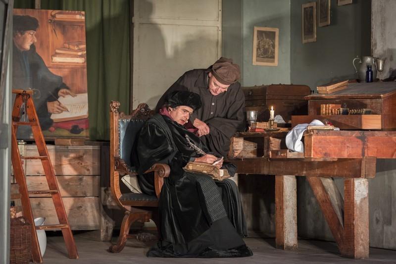 2016 ehrt die Reformationsstadt Basel Erasmus von Rotterdam. 2017 feiert die protestantische Welt Luthers Thesenanschlag am Kirchenportal zu Wittenberg. Diese beiden Jubiläen nimmt das Theater Basel zum Anlass und begibt sich in einer Theaterserie auf die Spuren von Erasmus und seiner Welt. Wer war dieser Mann, der an der Epochenschwelle von Mittelalter zu Neuzeit satirische, theologiekritische und pazifistische Schriften wie «Lob der Torheit», «Vom freien Willen» und «Die Klage des Friedens» verfasste und gleichzeitig die erste kritische Ausgabe des Neuen Testaments mit griechischem Text, als Wegbereiter der Reformation, in Basel beim bedeutenden Buchdrucker Johann Froben in Auftrag gab? Ein Humanist und Theologe, ein freigeistiger Gelehrter, ein unparteiischer Diplomat, ein Individualist oder ein «Aal», wie ihn Luther im Streit um die Willensfreiheit öffentlich nannte? Erasmus selbst verstand sich als Kosmopolit: «Ich wünsche Weltbürger zu sein, allen zu gehören, oder besser noch Nichtbürger bei allen zu sein.» Als Geert Geerts wurde Erasmus als uneheliches Kind um 1466 in Rotterdam geboren. Er studierte in Paris und lebte in England, Italien sowie in Löwen, Freiburg und Basel, wo er am 12. Juli 1536 in der Bäumleingasse 18 verstarb und im Münster beigesetzt wurde. Das geistige Klima der Stadt, das um 1500 durch die einzigartige Verbindung von Universität und Buchdruck in Basel herrschte, beeinflusste sein produktives Wirken und machte ihn zum wichtigsten Vertreter des Humanismus.