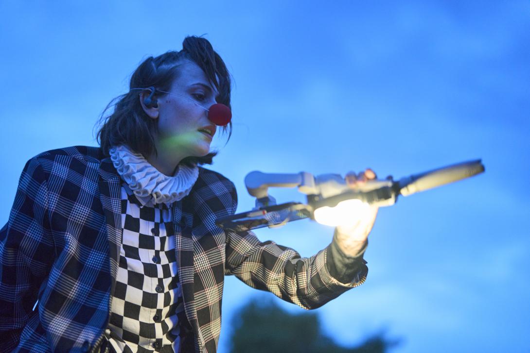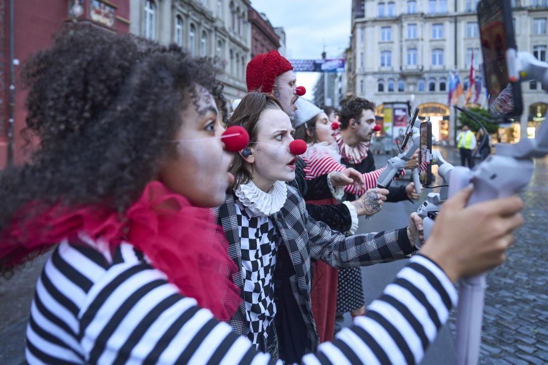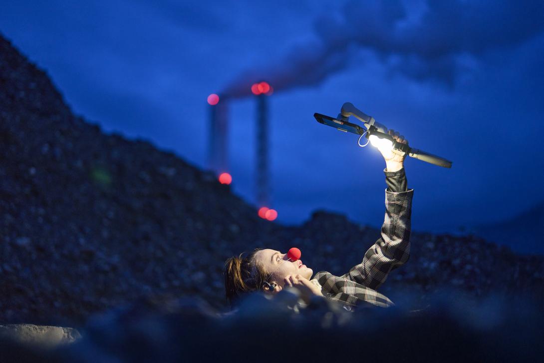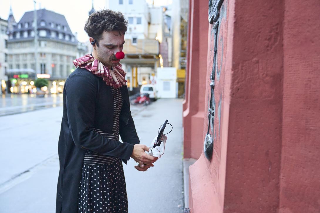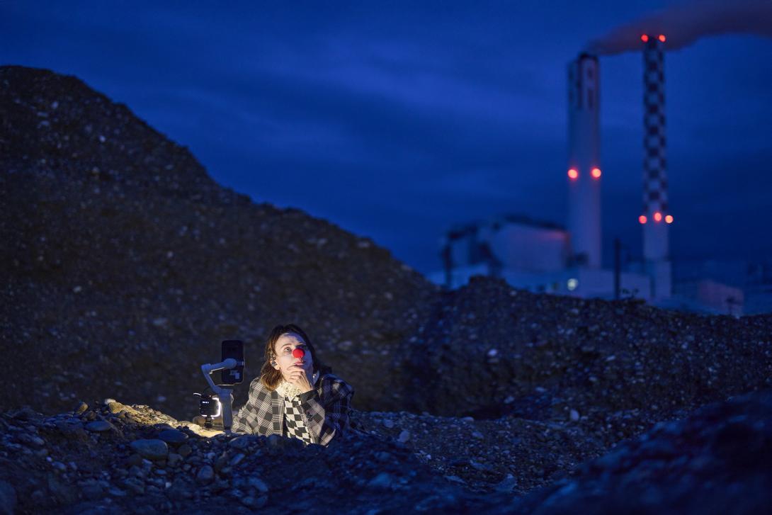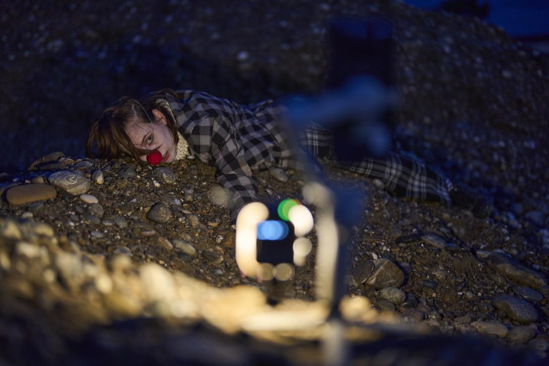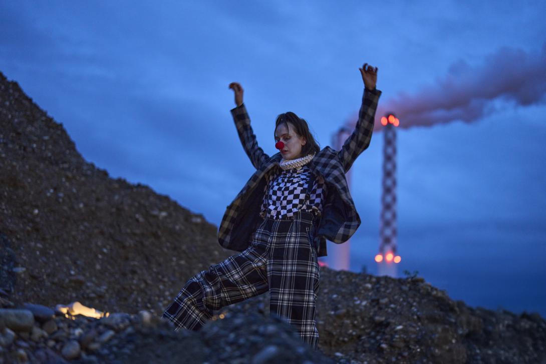 Für eindrückliche Bilder sorgt Antoinette Ulrich, der lokale Neuzugang im Ensemble: Ihre Figur verweigert sich der normierten Stadt. In einer Art Erschöpfungsdepression liegt dieser Clown in der Kiesgrube, hinter sich die Kamine der Kehrichtverbrennungsanlage. Das in Schwarzweiss gefilmte Bild wirkt wie eine Szene von Regisseur Andrei Tarkowski: trostlos, aber aufgeladen mit stillem Trotz. - bz Basel